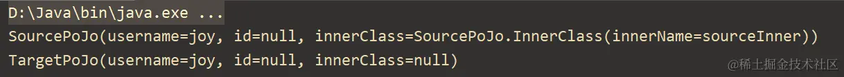 上面案例中,在拷贝源和拷贝目标中各自存在一个内部类InnerClass,虽然这个内部类属性也相同,类名也相同,但是在不同的类中,因此Spring会认为属性不同,因此不会拷贝数据。