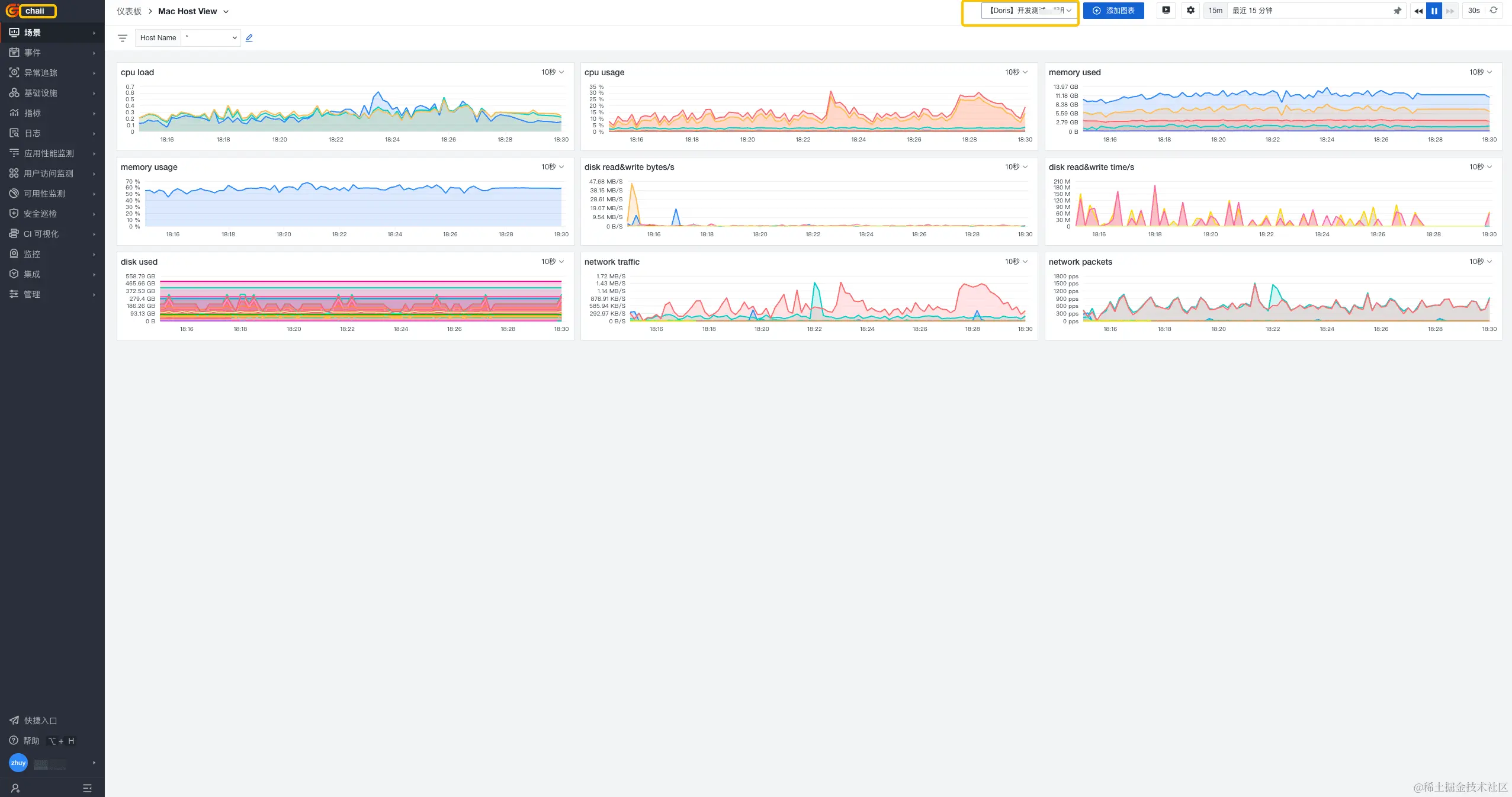 授权成功后,我们就可以在 chaii 工作空间的仪表板直接查看和分析 Doris 工作空间的 MAC 主机数据。