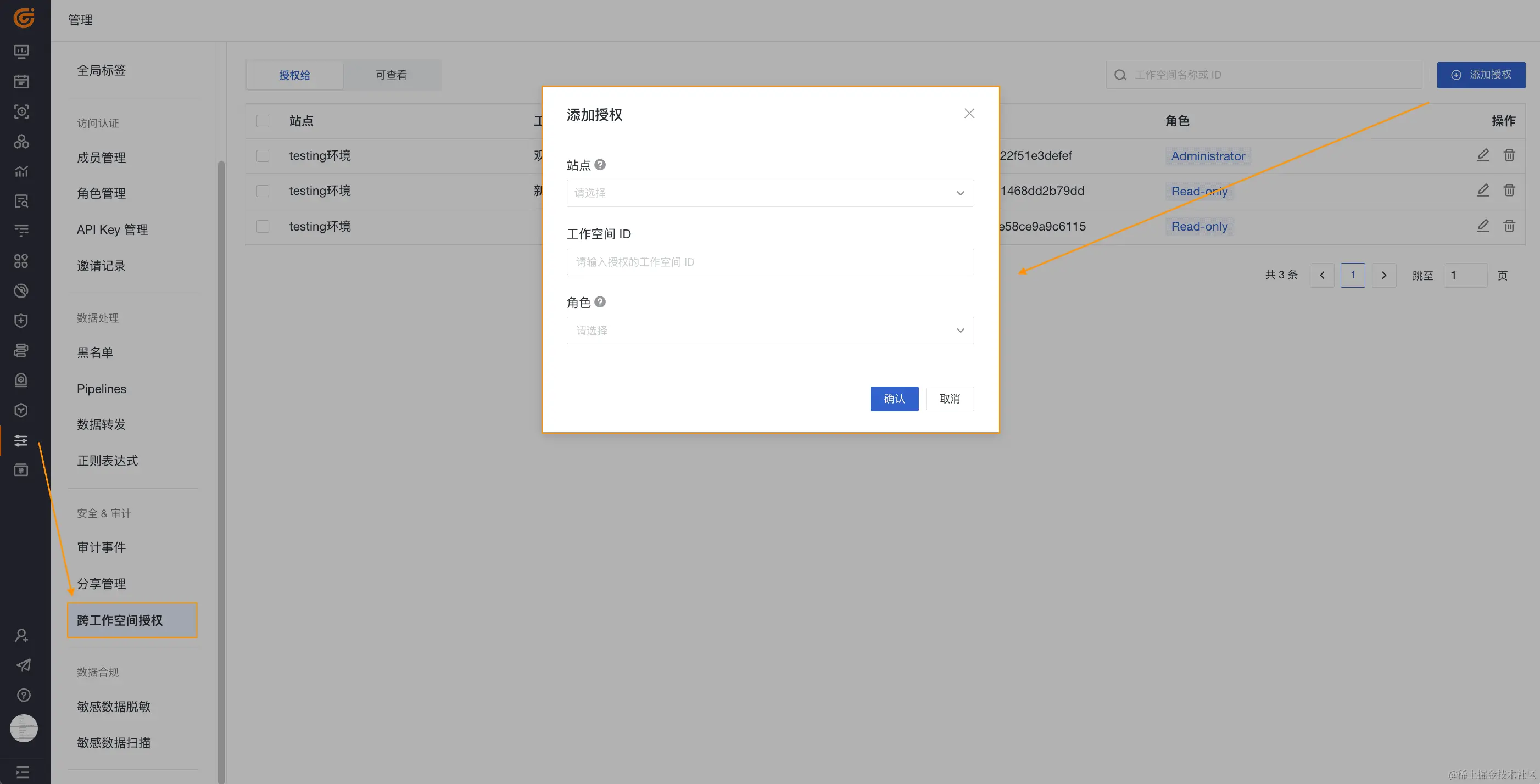 跨工作空间授权