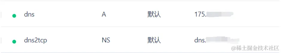 第一条A类记录,告诉域名系统,"DNS.xxx.com"的IP地址是"175.xxx.xxx.xxx"