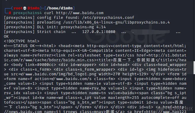 proxychains4 curl http://www.baidu.com