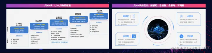 下面分享三一集团在AI+HR方面的实践,首先在做AI+HR过程中,我们参照了汽车企业的自动驾驶分级标准,将人力资源数智化分为L1至L5五个级别,通过研究这些级别,我们明确了人力资源数智化的整体标准和方向。
