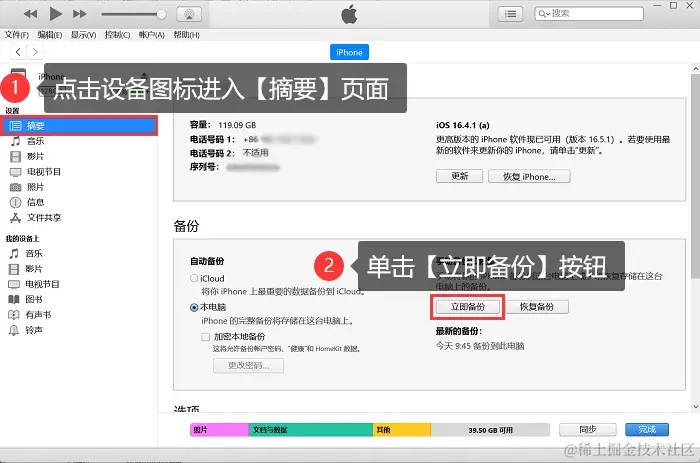 方法二:借助iTunes备份苹果手机数据