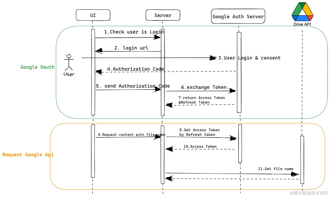 服务器端Web应用可以存储用户第一次同意后返回的Refresh token,后续调用Google api时,可以在用户无感知的情况下获取更新可用的Access Token。