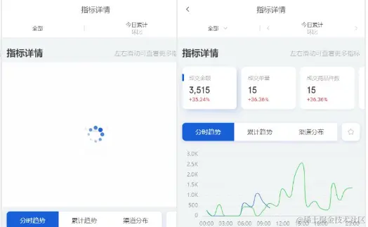 分析原因:指标详情页为一个二级路由页面,可通过核心指标页下钻到该页,也可通过客户端首页直接查看某个指标的详情页。这将导致,在查看该页面前,需先加载经营分析模块。