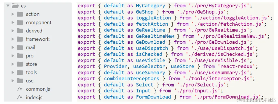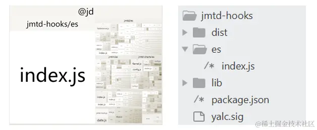 分析后可得出结论:webpack对单文件,仅利用其静态分析能力摇树效果很弱,导致微应用制品包含了大量未使用的代码。解决办法也很简单,调整jmtd-hooks的打包方式,保留原始的文件结构。调整后hooks包的结构为: