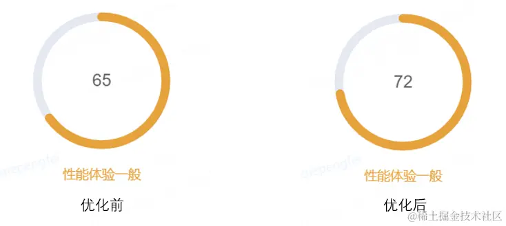 完成以上步骤后,我们进行了一次上线,并连续监测了一周的数据。用户体验值有了明显的提升,从以前的58分提升到65分。