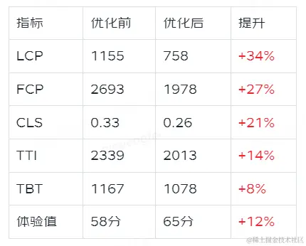 以下为优化前后各指标的对比数据(单位:ms):