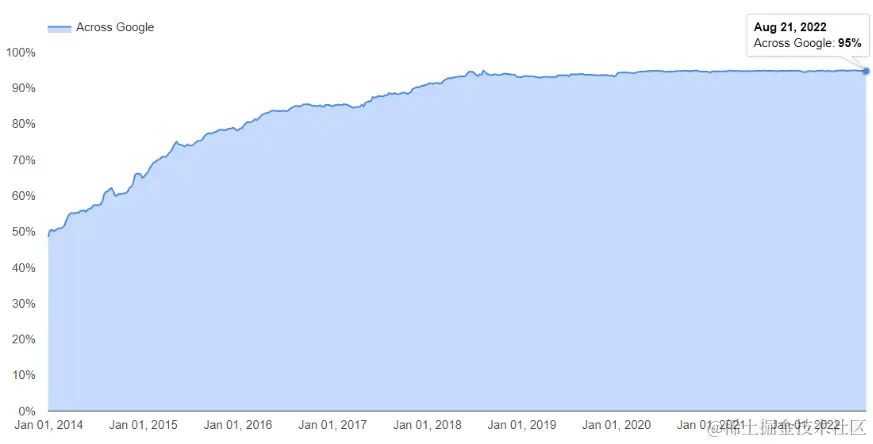 3、谷歌搜索引擎 95% 的流量都是加密的,确保了用户的安全体验