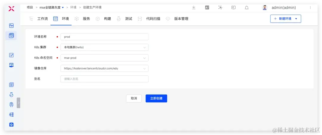 1. 在 Zadig 上新建生产环境