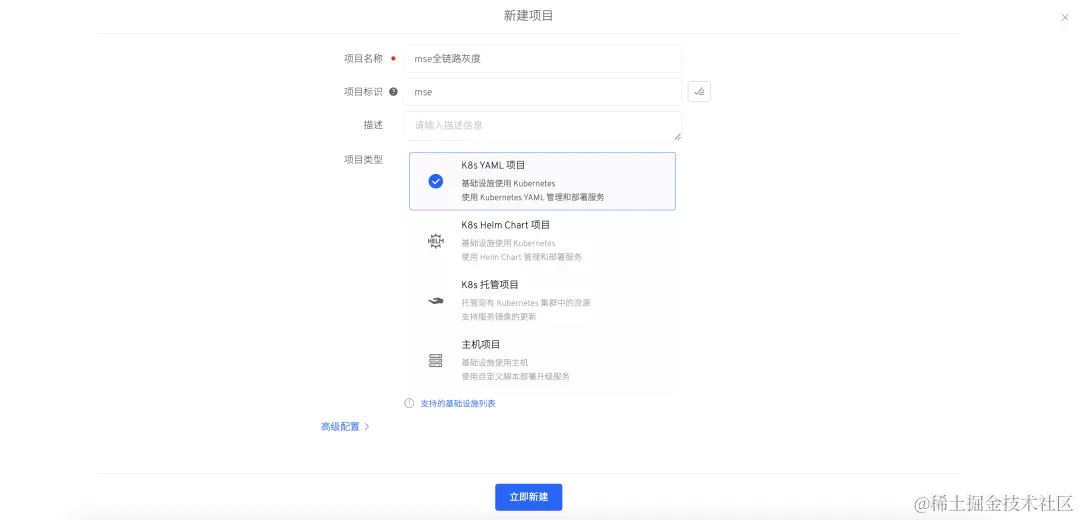 在 Zadig 上新建项目,输入项目名称,项目类型选择 「K8s YAML」项目。