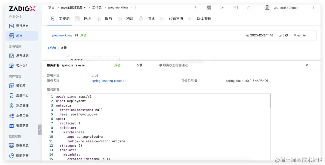 灰度服务验证没有问题后,执行 prod-workflow 工作流,选择更新的服务及对应的镜像,即可更新生产服务。
