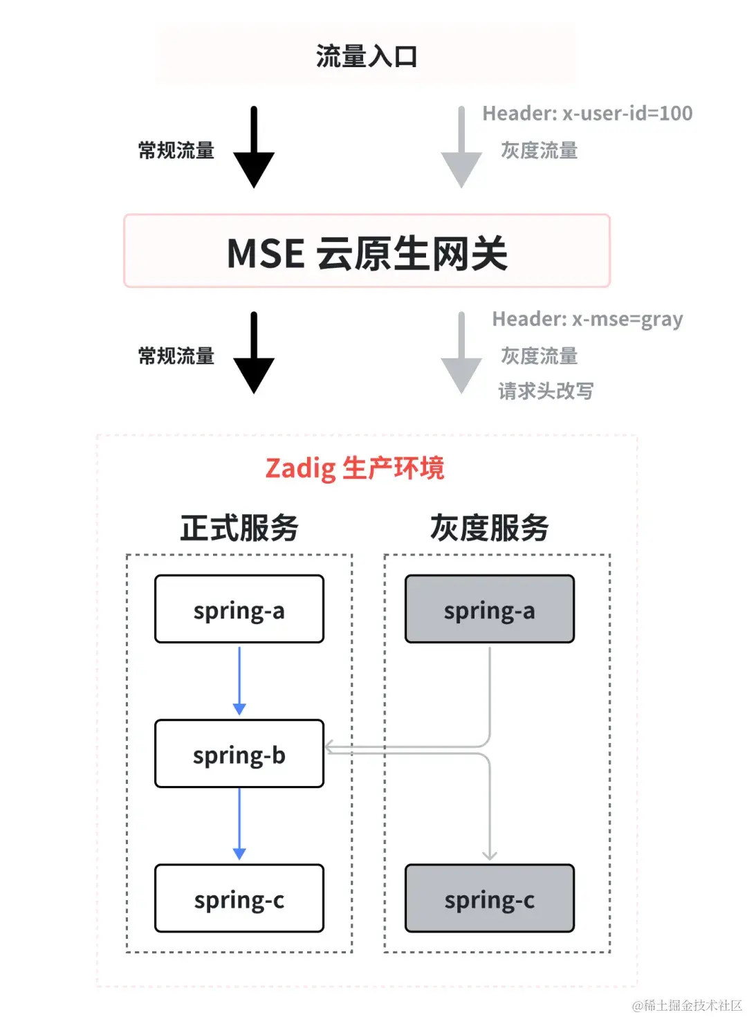- MSE 灰度发布:用于部署灰度服务