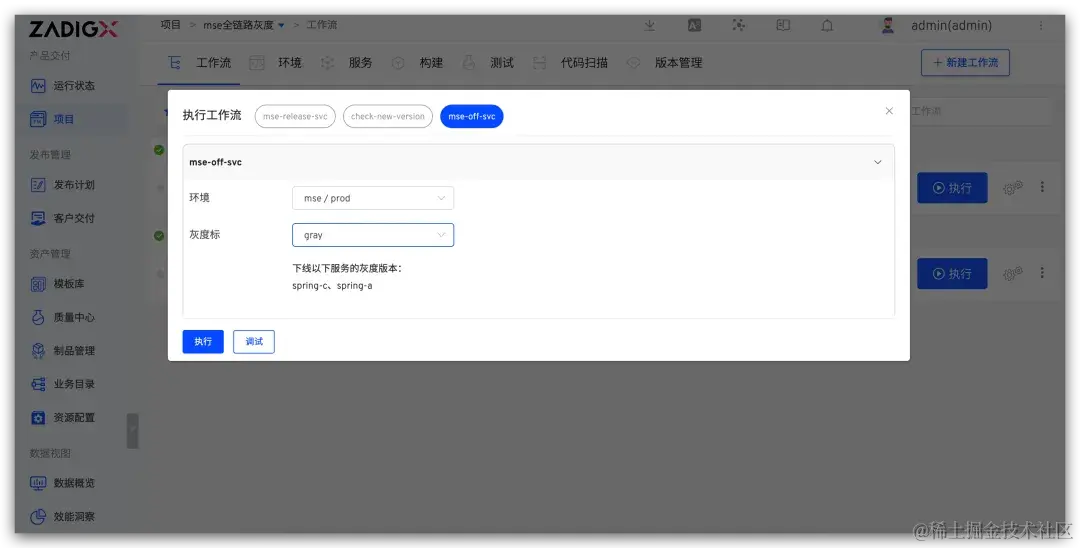 生产发布成功后,执行 mse-gray-workflow 工作流,选择需要下线的灰度标,即可下线对应的灰度服务。