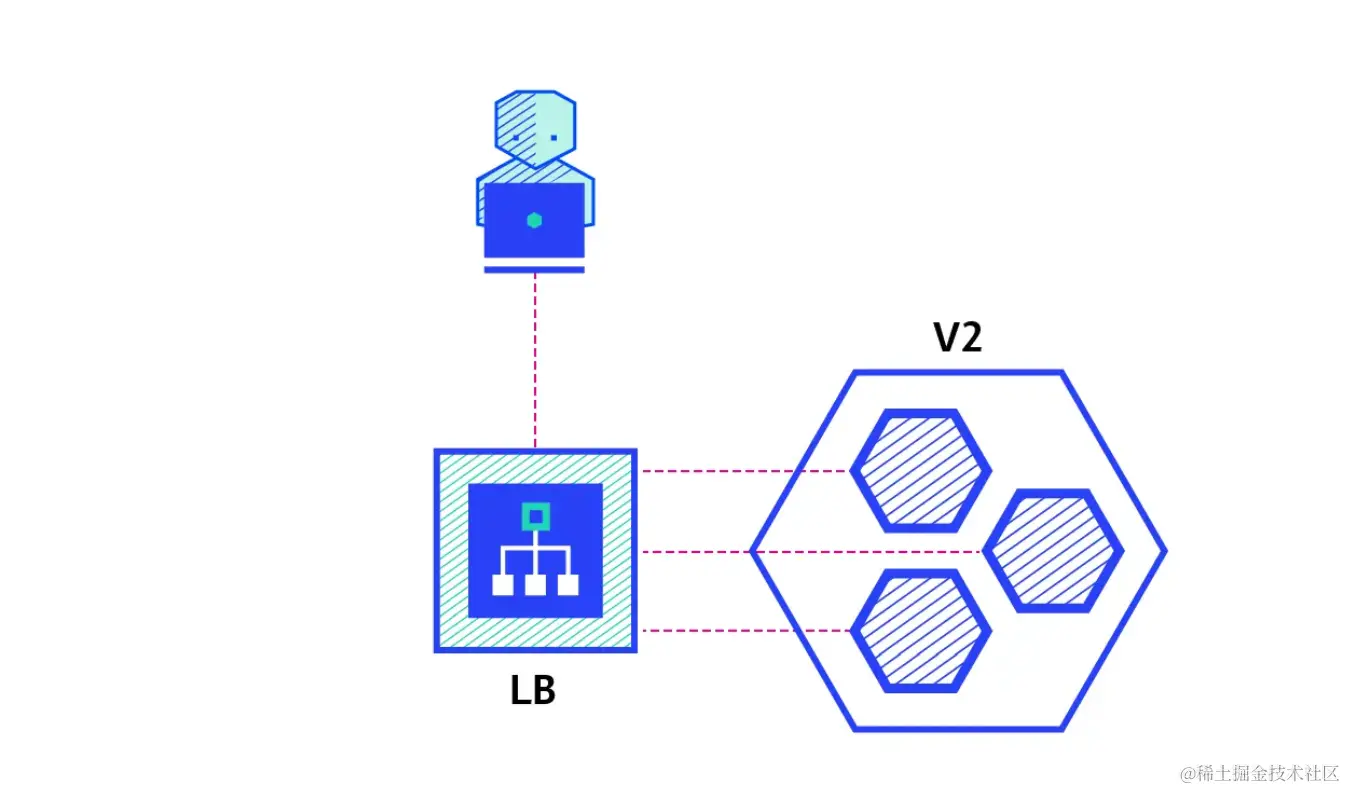 在上面的示例中,运行 100 个 Pod 可能是不切实际的。更好的方法是使用负载均衡器,如NGINX、HAProxy或Traefik,或者使用类似Istio、Hashicorp Consul或Linkrd的服务网格,他们可以提供对流量的更好控制。