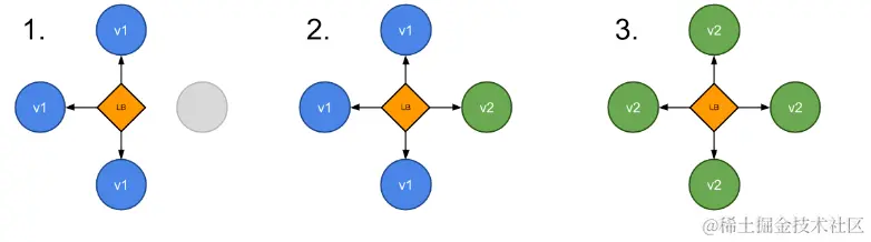 一旦就绪探针检测到新版本应用程序可用,旧版本应用程序将被删除。如果出现问题,可以停止部署并回滚到上一个版本,避免整个集群的停机时间。由于每个 Pod 逐个替换,对于较大的集群,部署需要一定的时间。如果在另一个部署完成之前触发了新的部署,版本将更新为新部署中指定的版本,并且尚未部署成功的先前部署版本将被忽略。
