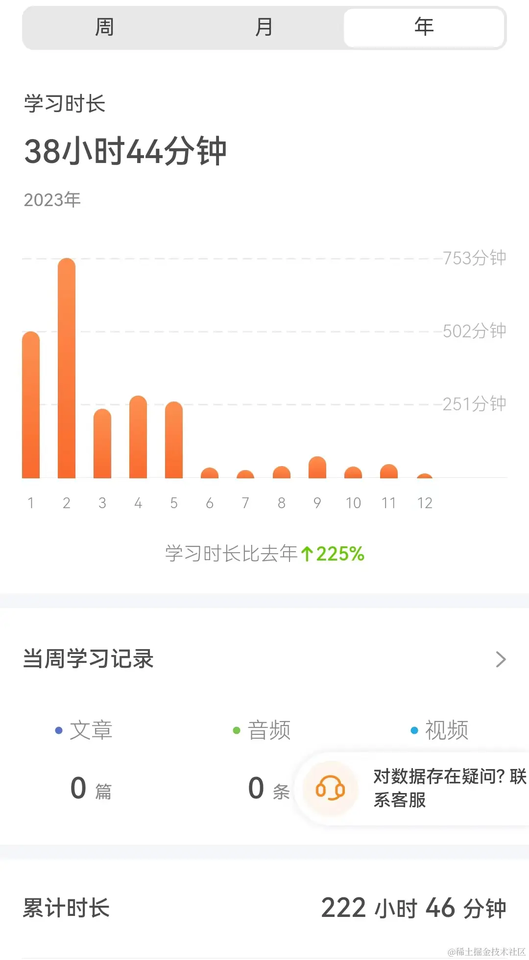 5、阅读:微信读书 10 小时,极客时间 38 小时 44 分钟