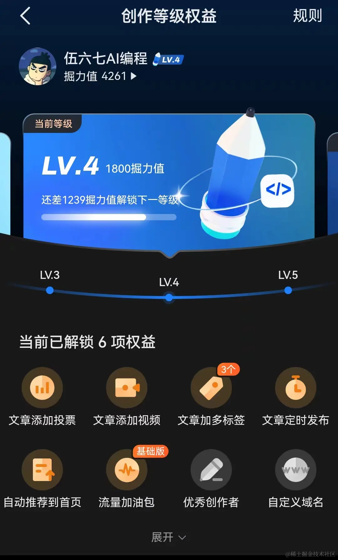 2023 年度在掘金输出 56 篇原创文章,成功升级到掘金四级,很快五级,大部分文章都会被直接推送到首页。