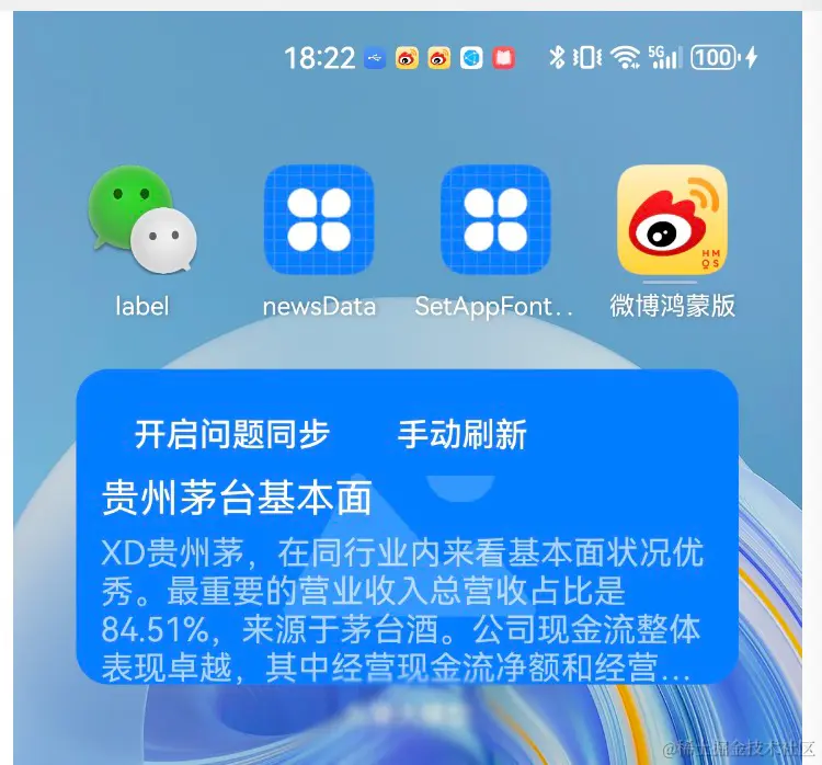 let formId: string = want.parameters[formInfo.FormParam.IDENTITY_KEY]; PreferencesUtil.createDataPreferences(this.context); PreferencesUtil.saveDataPreferences("formId",formId); 如我们点击了卡片上的实时刷新功能;我们就可以获取保存过formId,在主工程调用 formProvider.updateForm方法来刷新卡片;
