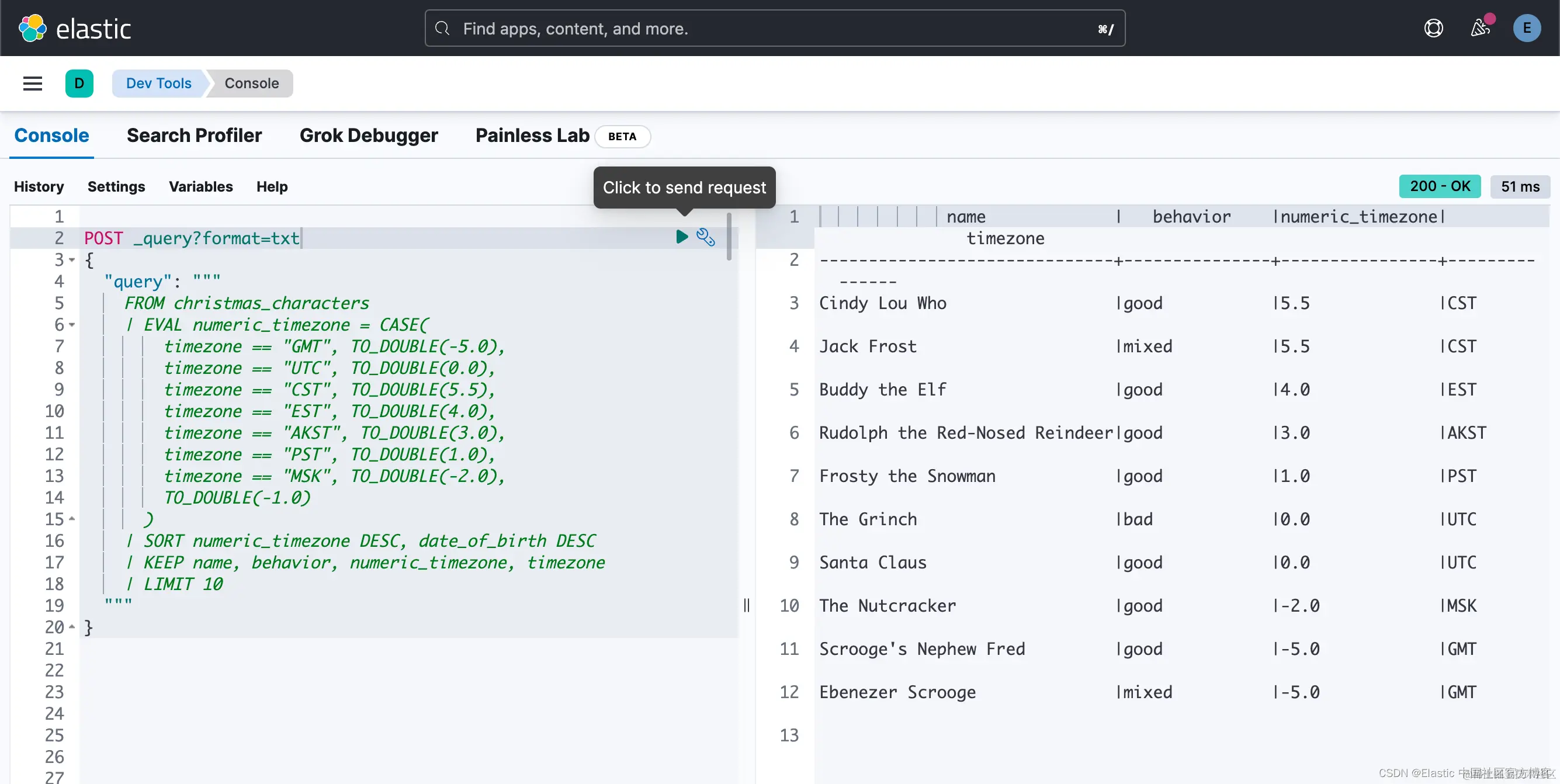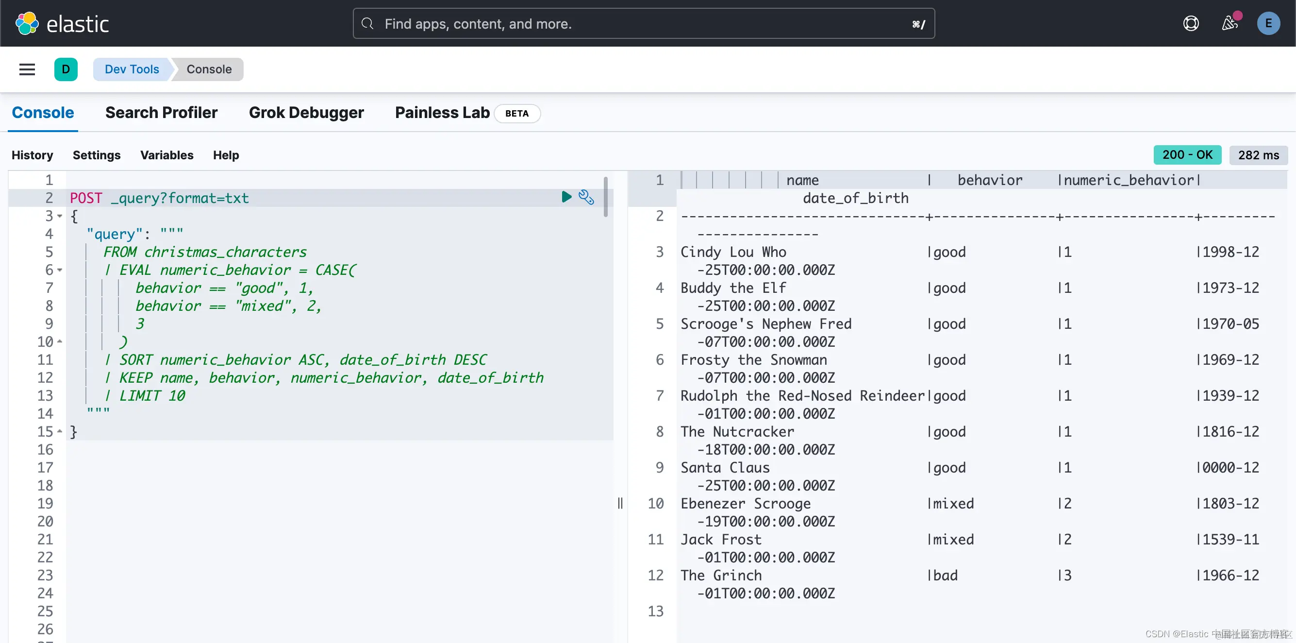 编写与第一个 Painless 示例类似的查询如下所示 — 在 EVAL 中使用 CASE 语句。 这里不讨论太多细节,这是一种将结果传递到下一个语句的过程语言。