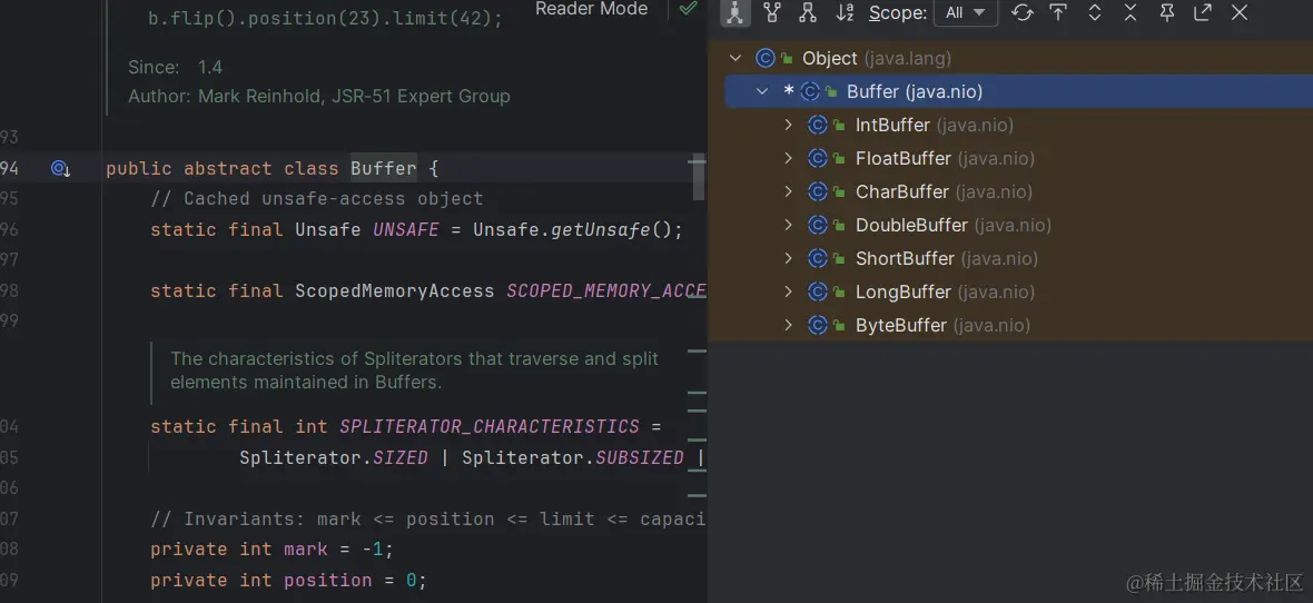 - Buffer类定义了所有的缓冲区都具有的四个属性来提供关于其所包含的数据元素的信息