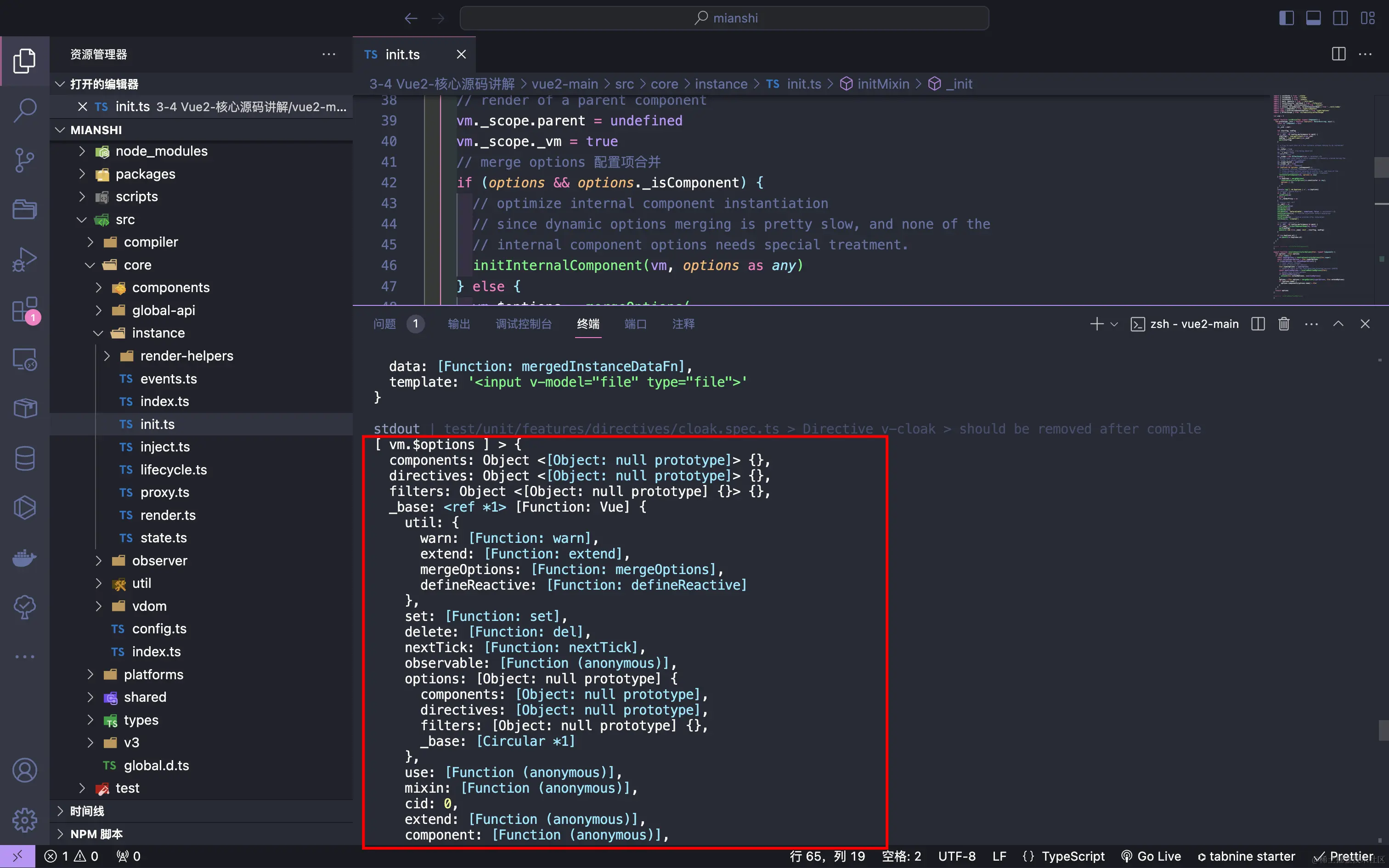 "test:unit:newvue": "vitest run test/unit/modules/vdom/create-component.spec.ts"- 然后命令行运行: