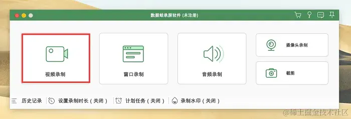 步骤1:访问数据蛙录屏软件的官方网站,下载并安装适用于MacOS系统的版本,然后打开它,录制电脑屏幕我们选择 “视频录制” 模式。