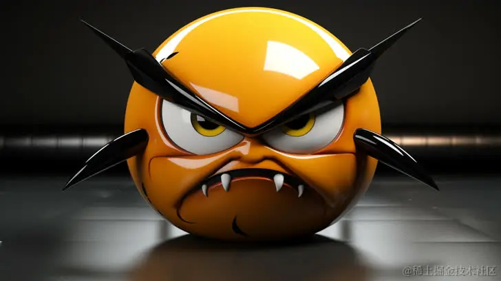 Angry face of a yellow emoticoid, in the style of Vray tracing, dark orange and black, photorealistic techniques, Berrypunk, Neogeo, Havencore, stylish