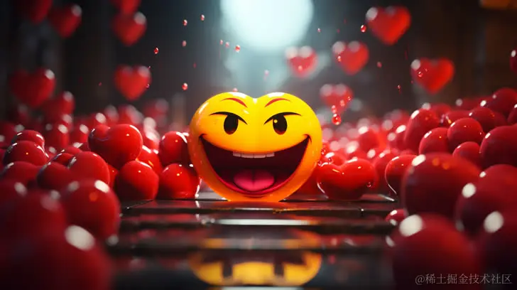 采用Unreal Engine 5风格的红色赫斯尔眼睛的表情符号球,充满爱意和浪漫,深黄色和深粉色,HD模型,Neogeo,8k 3D,包含以上所有特点