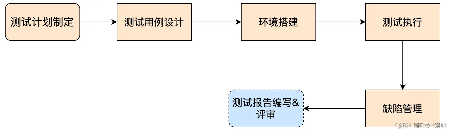 软件测试流程是指在软件开发过程中进行的测试活动的规划、设计、执行和管理过程。软件测试流程通常包括测试计划制定、测试用例设计、测试环境搭建、测试执行和缺陷管理、测试报告编写和评审等阶段。