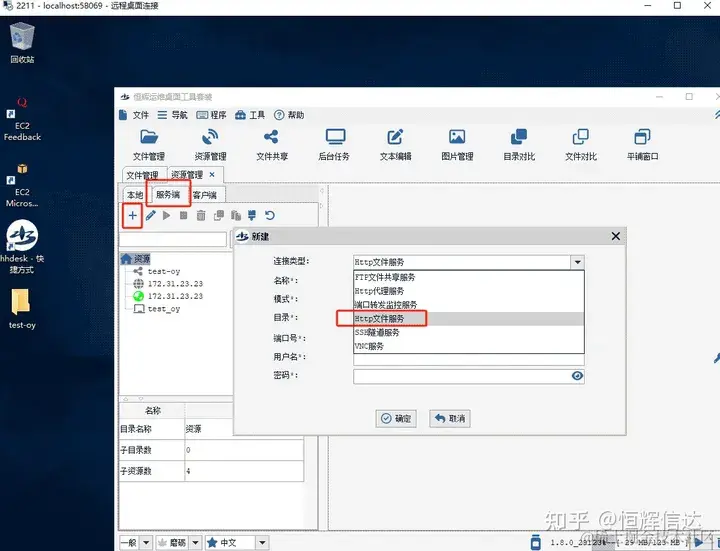 HHDESK首页——点击文件共享,在弹出框中选择“HTTP文件服务”