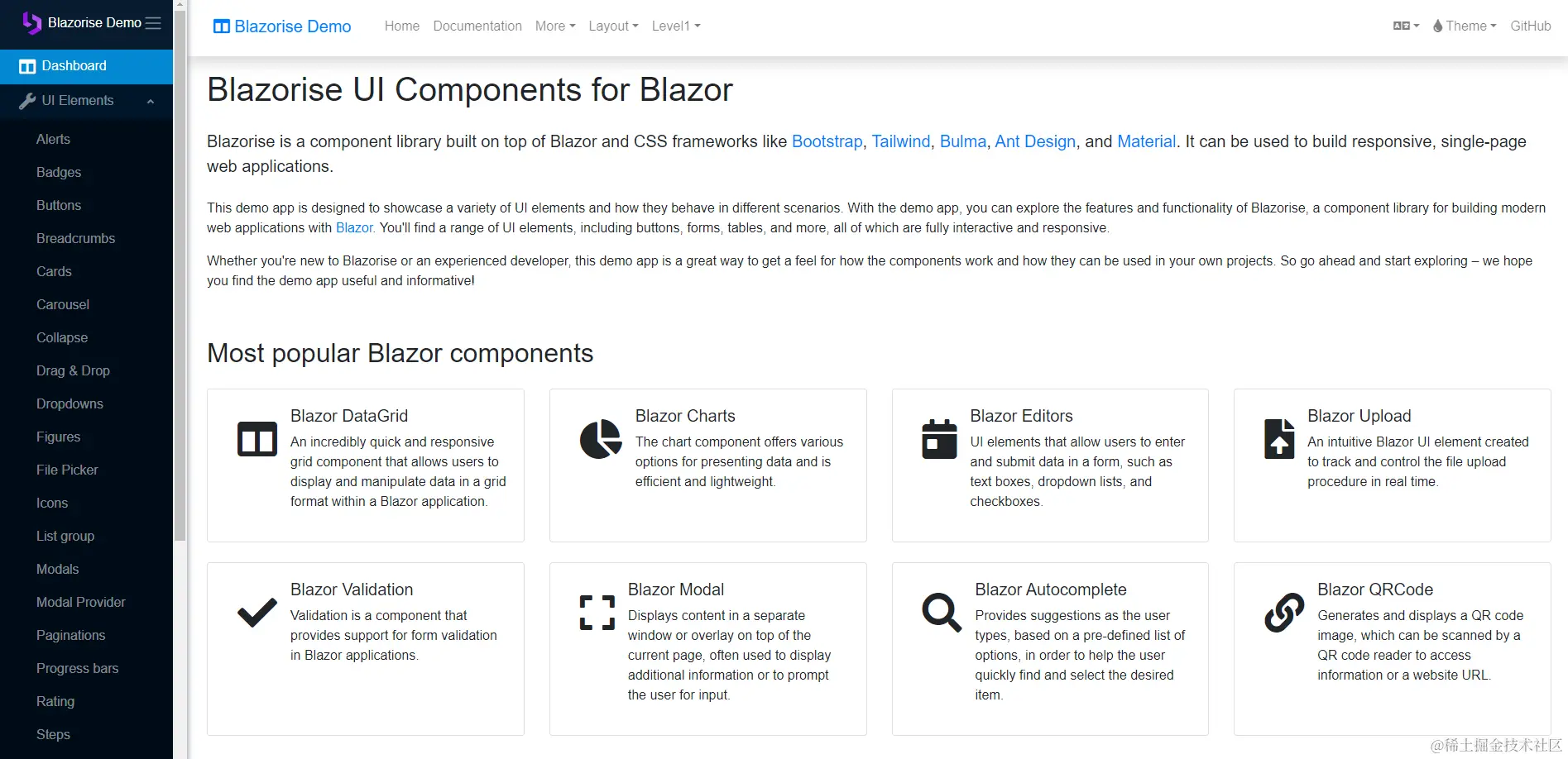 经常看到有小伙伴在DotNetGuide技术社区交流群里问有什么好用的Blazor UI组件库推荐的,本文将分享一些开源、实用、美观的Blazor UI组件库,提供给广大C#/.NET开发者们学习和使用(注意:排名不分先后,都是十分优秀的开源框架和项目💖)。这些框架都已收录到C#/.NET/.NET Core优秀项目和框架精选中,关注优秀项目和框架精选能让你及时了解C#、.NET和.NET Core领域的最新动态和最佳实践,提高开发效率和质量。坑已挖,欢迎大家踊跃提交PR,自荐(让优秀的项目和框架不被埋没🤞)。