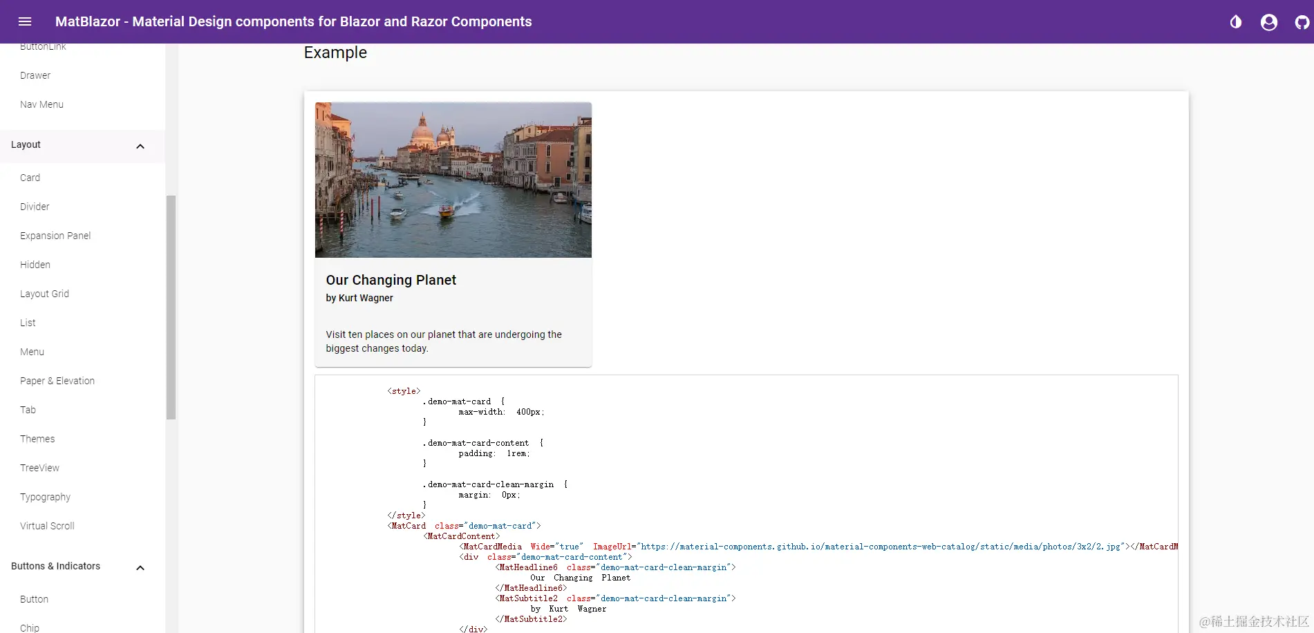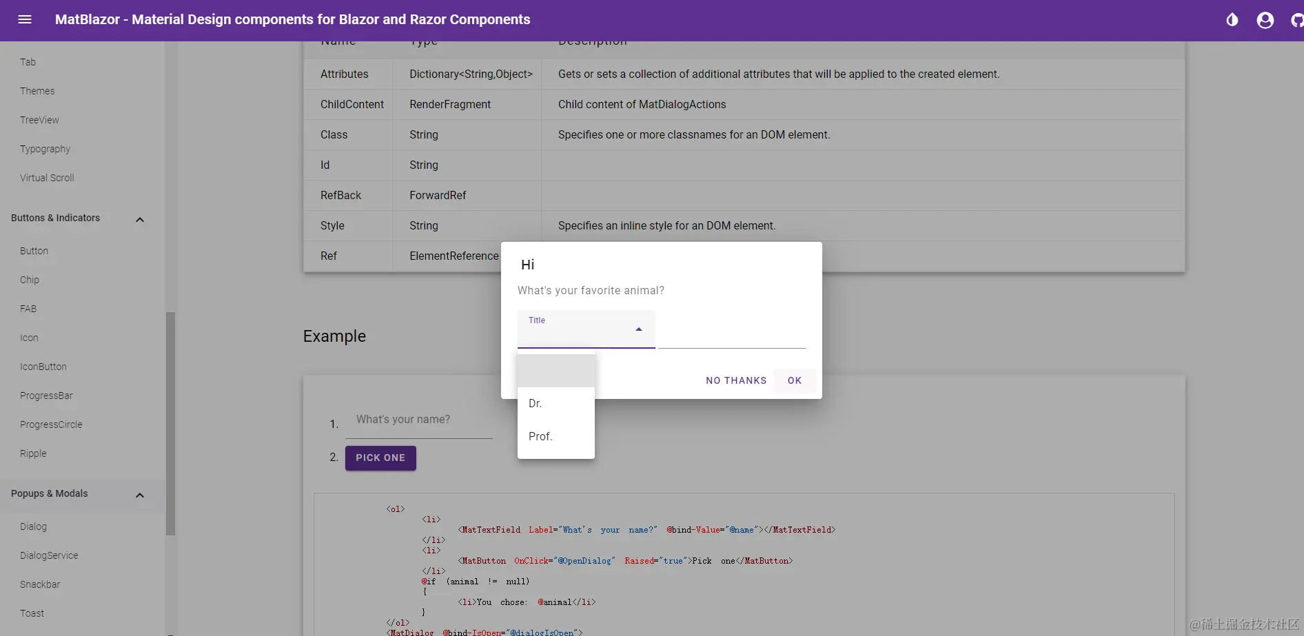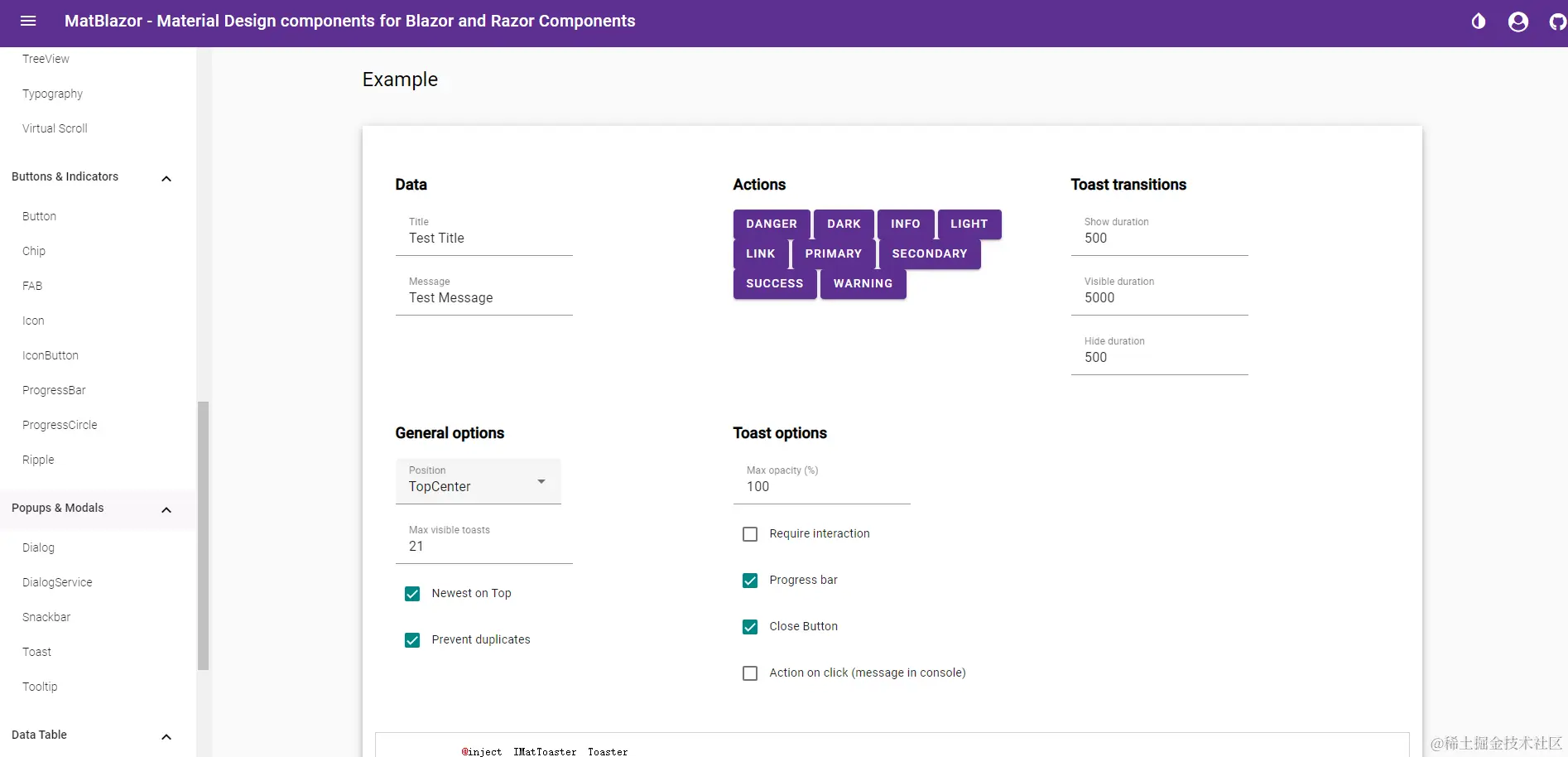 MatBlazor是一套基于Material Design规范实现的Blazor和Razor通用组件库。