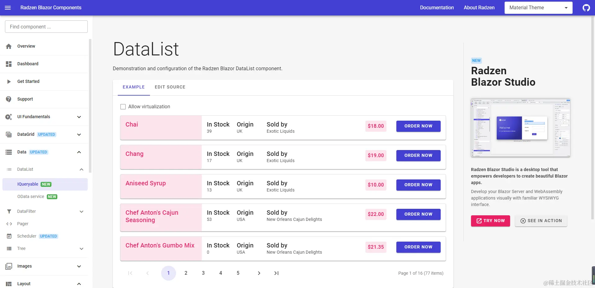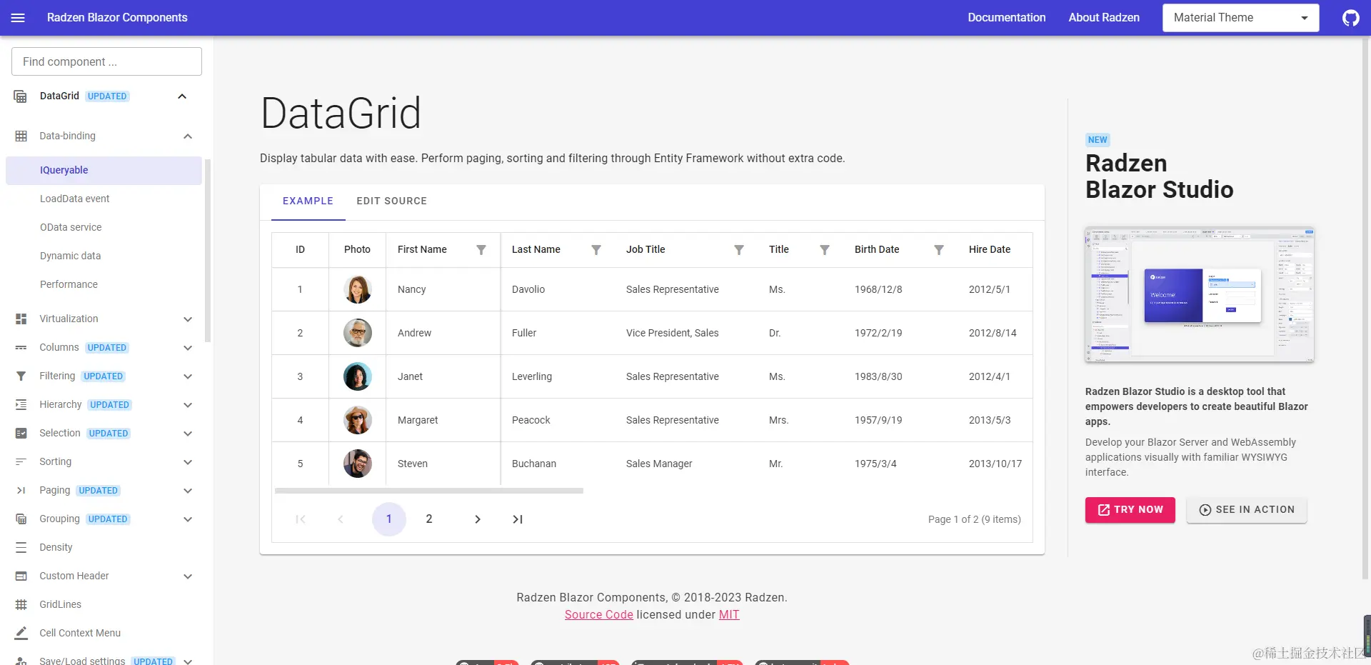Radzen Blazor 是一个包含70多个免费的原生 Blazor UI 组件的集合,其中包括 DataGrid、Scheduler、Charts 等功能强大的组件,并提供了丰富的主题样式,包括 Material Design 和 FluentUI。可以将 Radzen Blazor 视为一个用于构建 Blazor 应用程序的 UI 框架,它提供了一系列预构建的组件和工具,帮助开发人员快速搭建和定制自己的应用程序界面。