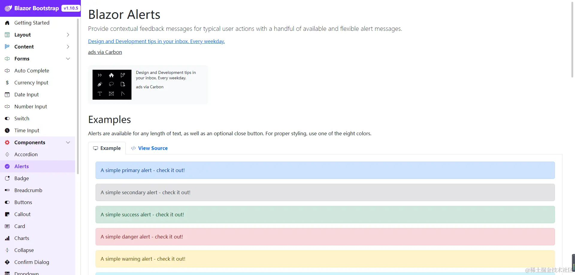 BlazorStrap是一个基于 Bootstrap 的 Blazor 的 UI 组件库,BlazorStrap的组件也支持响应式布局、主题定制以及多语言支持等功能,可以帮助开发者快速搭建出美观、易用的 Web 应用程序。