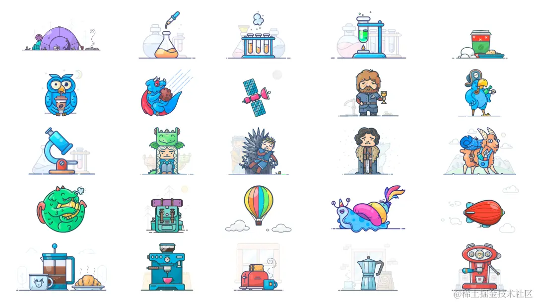 这个网站里面的图标真是太好玩儿了,非常简单且真的特别搞笑,基本都是线条勾勒出的各种形象,七扭八扭但就是觉得好看,而且有