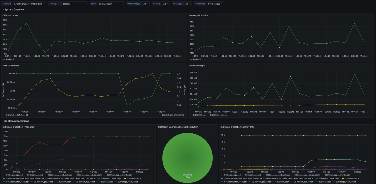 新增 Prometheus、Grafana 一键拉起脚本,并自动导入 AutoMQ Kafka 大盘 github.com/AutoMQ/auto… 丰富存储层的 Metrics github.com/AutoMQ/auto… github.com/AutoMQ/auto…