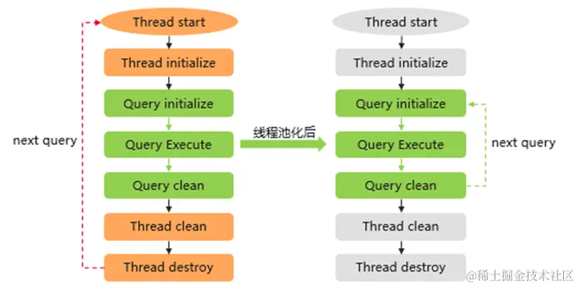 stream线程池实现了DN stream线程的复用,避免了stream线程创建、初始化、清理、销毁的开销。