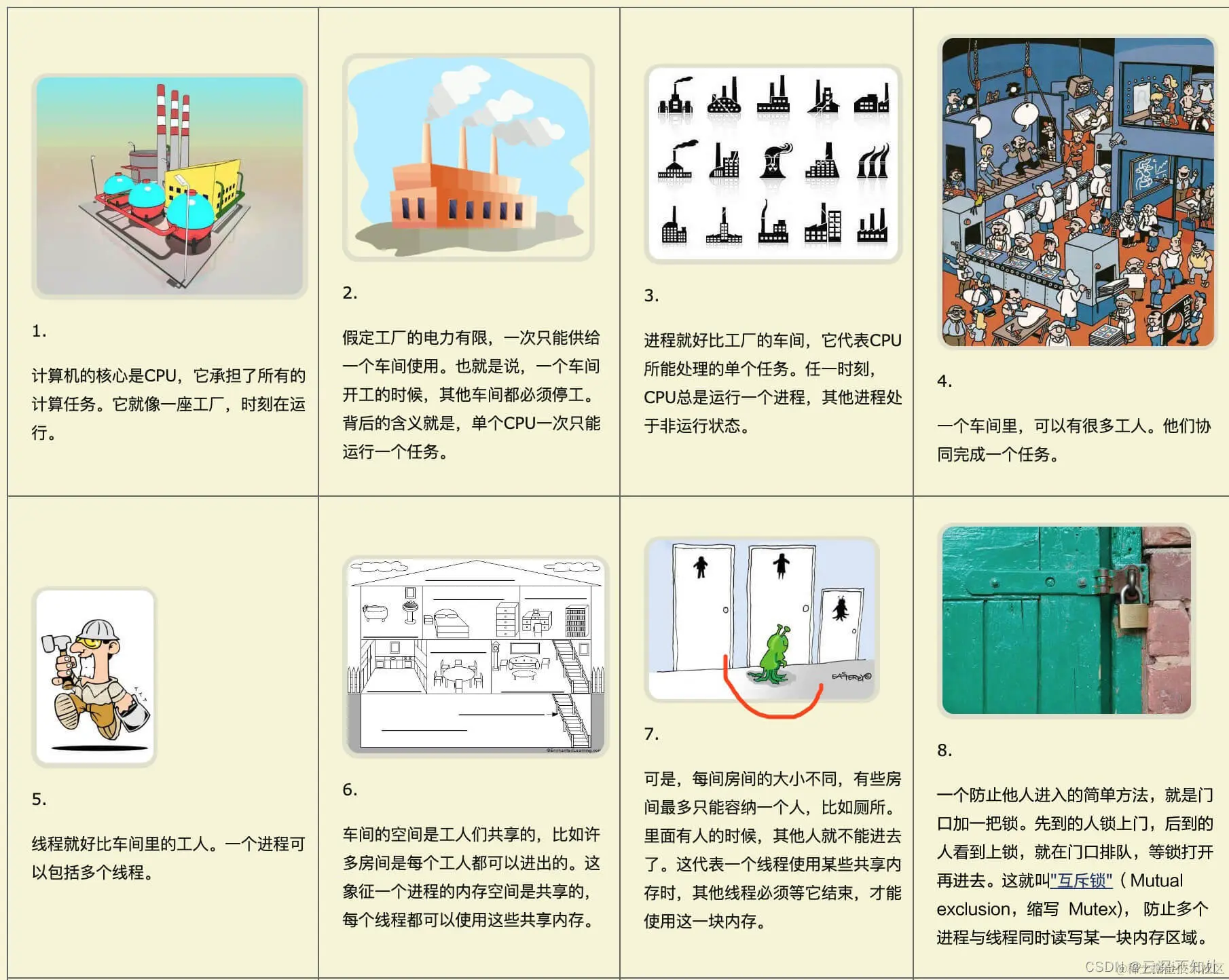我在博客《线程与进程,你真得理解了吗_进程和线程的区别-CSDN博客》找到了这张图片,他非常传神的表达了CPU、进程、线程三者之间的关系的关系。