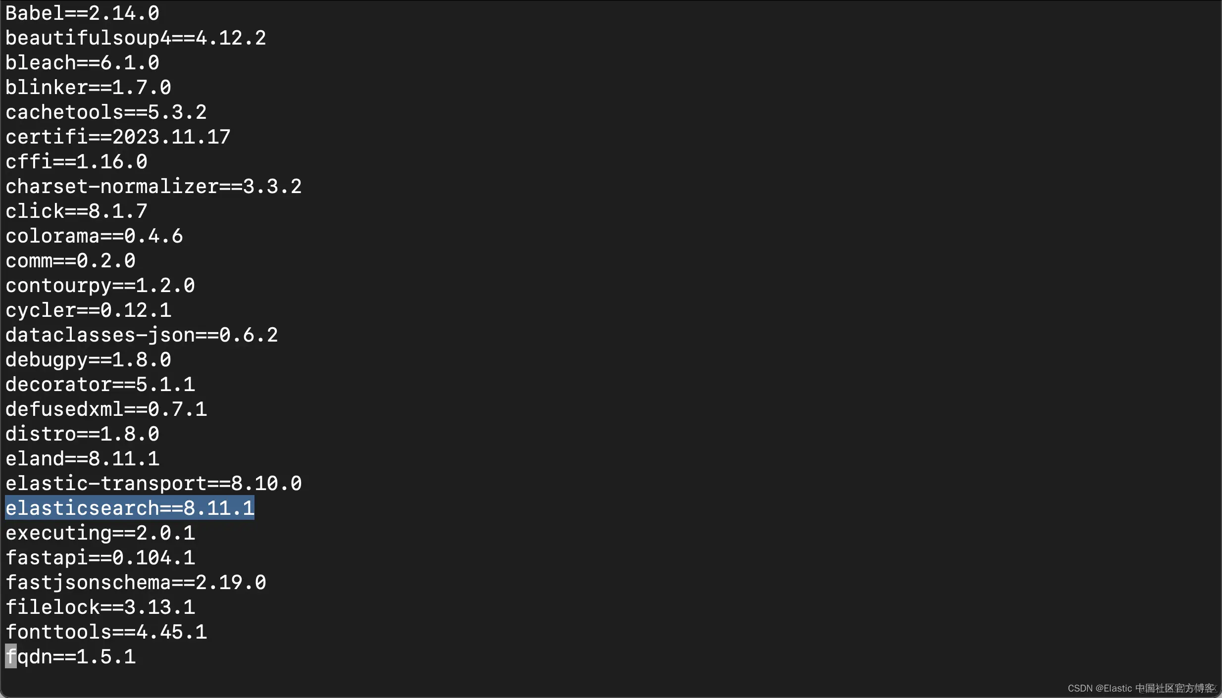 我们可以看到最终的 requirements.txt 文件中的 elasticsearch 版本被修正了: