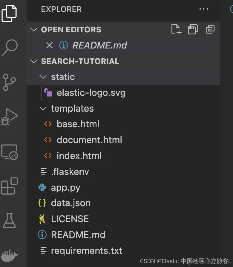 在代码编辑器中创建一个新的 search.py 文件,该文件位于 search-tutorial 目录中。 search.py 文件将定义所有搜索函数。 为搜索功能创建一个单独的文件的想法是,这将使你可以轻松地提取该文件并稍后将其添加到你自己的项目中。