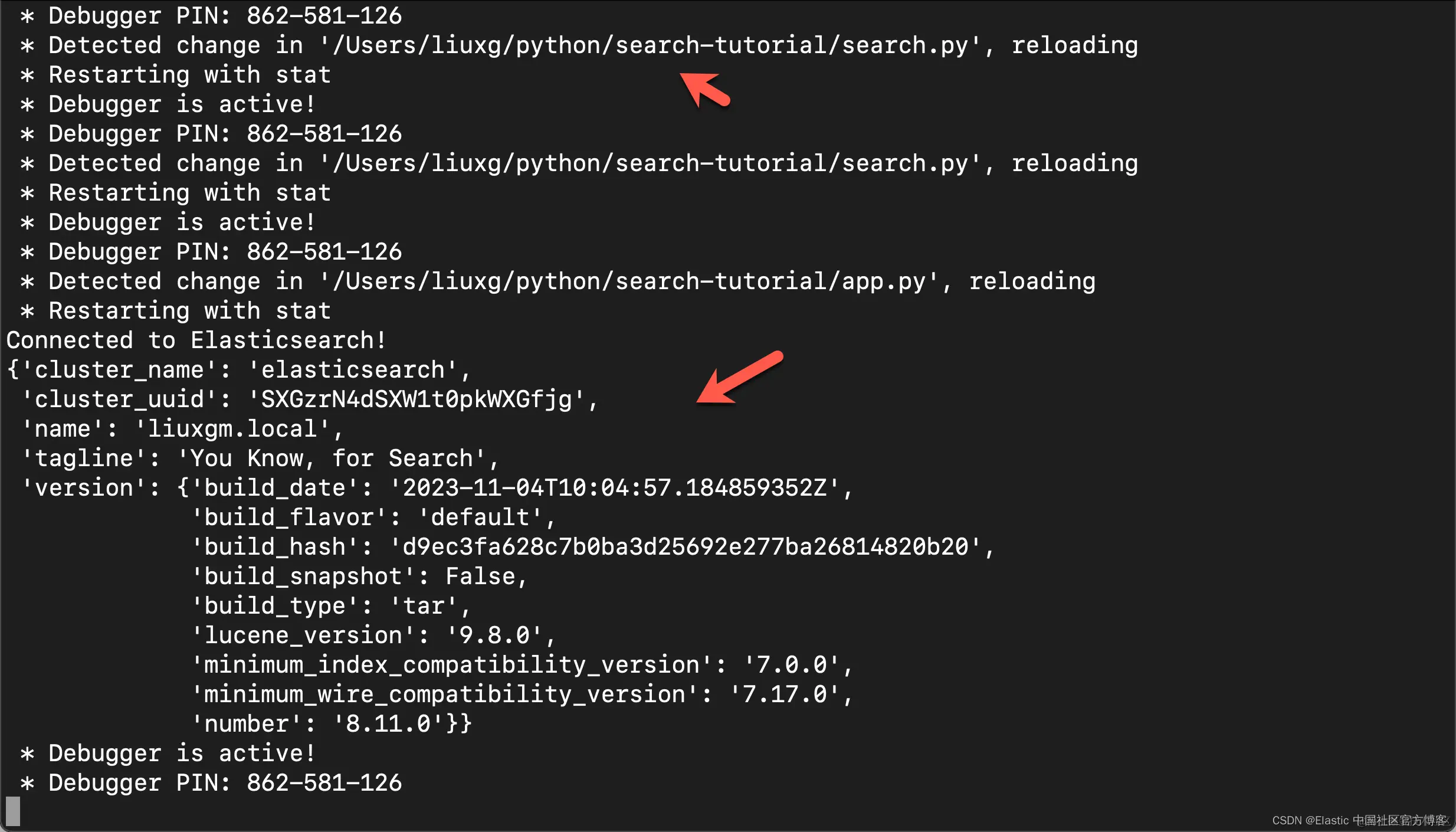 新版本端点第二行中对 es.search() 的调用会调用上面在 search.py 中添加的 search() 方法,该方法又调用 Elasticsearch 客户端的 search() 方法。