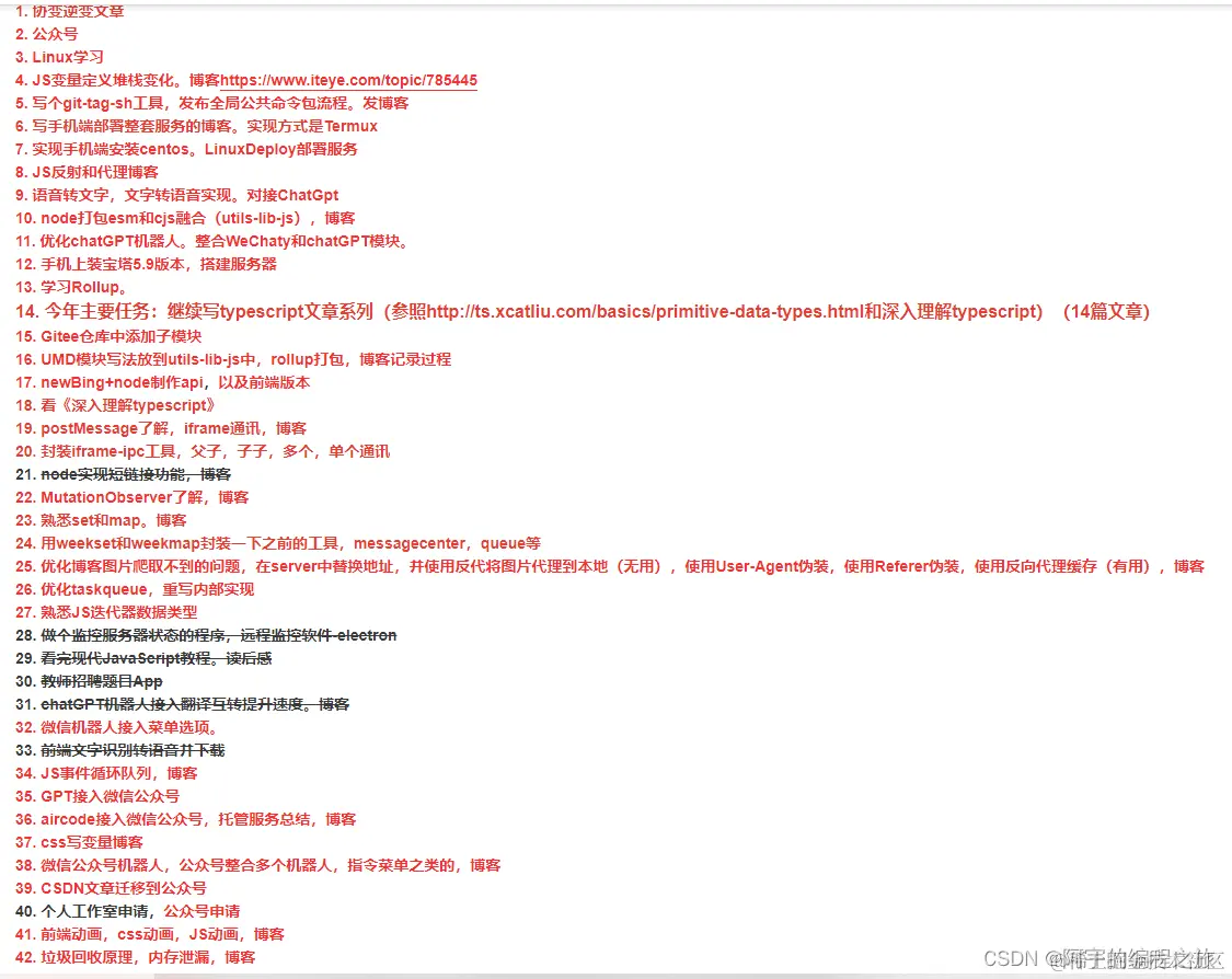 我的技术方面的学习和产出计划喜欢在有道云笔记里记录,从2021年开始(也就是我的第二家公司入职以来)我的每一个学习计划都会维护到笔记中,去年一年在技术方面我在云笔记中产出150多个计划,其中包括21年的30多个和22年的50多个就像下面这种