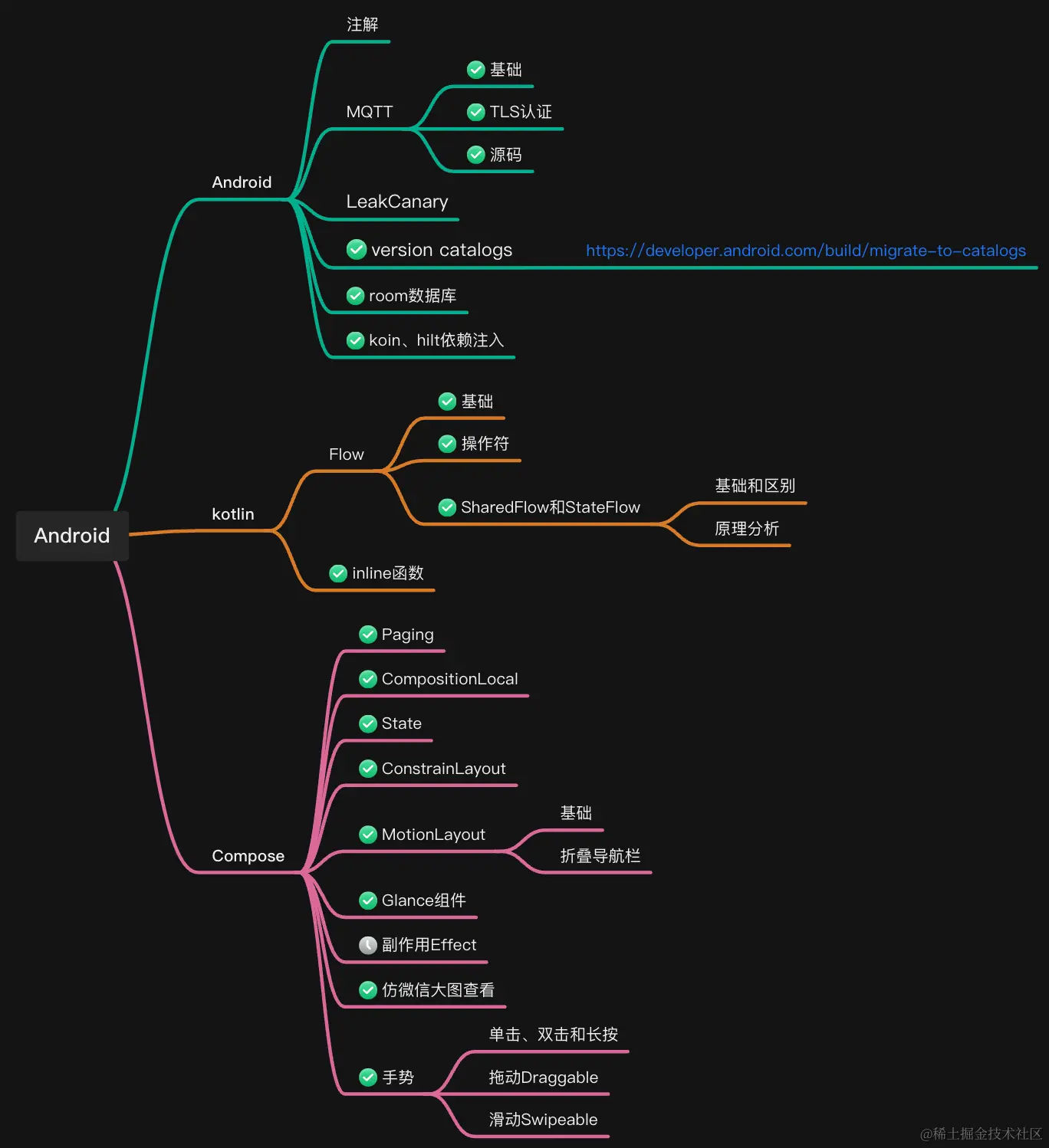 2024年技术方面还是会以Kotlin、Compose和Flutter为主,将主要时间投入到这三个方面,目前火热的鸿蒙因为项目还未单独适配,先以观望的角度看待吧,如何需要单独进行适配肯定会花大把的时间去了解和学习的。