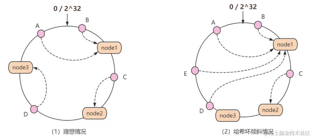 当然,这个算法也有它的缺点。有时候,所有人似乎都想停在同一个车位上,这就造成了负载不均,即哈希环倾斜的情况。