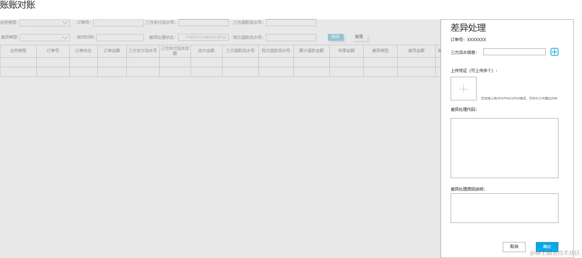 - 对账完成后,对有差异问题的订单给予差异处理功能;