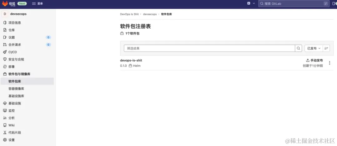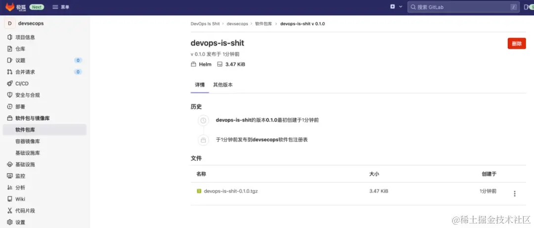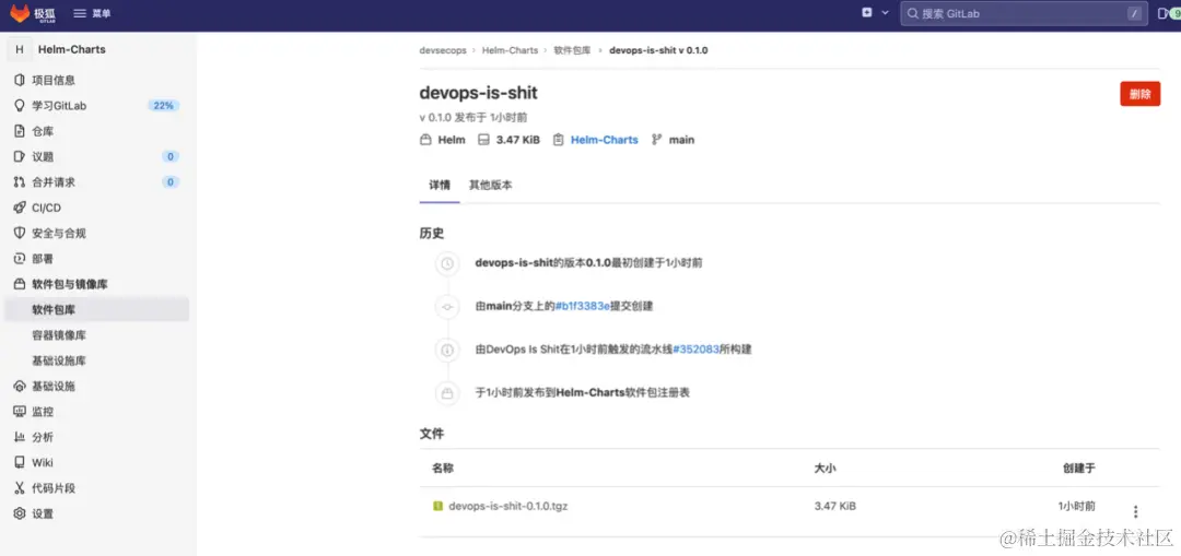 以上可以看到,极狐GitLab 内置的 Helm Chart Registry 使用起来是非常方便的,结合 CI/CD 能够完成 Helm Chart 的自动发布。