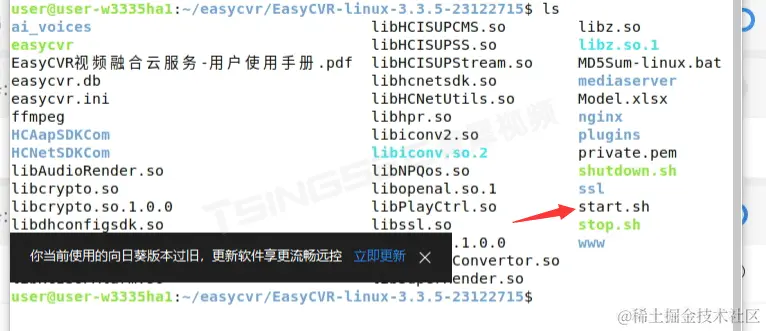 5)只需在新版本EasyCVR目录下执行 chmod +x ./start.sh 即可。