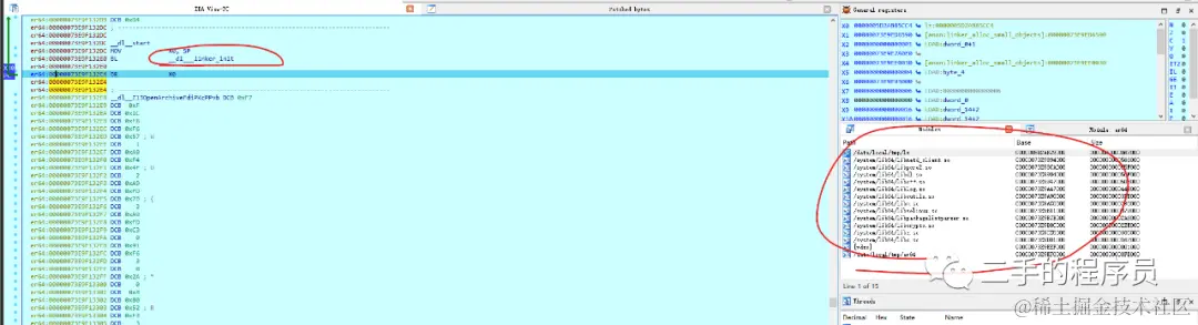 那么上面的信息中,前面两行里面,我们发现 ls 文件被加载了,这又是为啥?我们明明已经在 linker 的入口函数加了一个死循环,linker 根本不会执行加载逻辑才对。