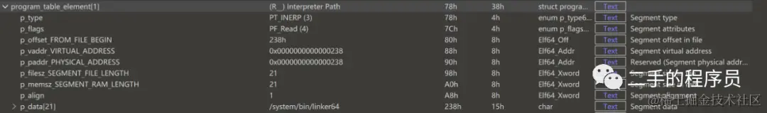其实是因为,这两个可执行段不是由 ls 中指定的 linker 加载的,而是其他进程中的 linker 加载的,现在先简单的理解为是 init 进程干的吧(虽然也不一定对,等后面搞os再研究,不知要到猴年马月)。剩下的其他 ELF 依赖文件,比如 libc 等将由路径中指定的 linker 来加载。
